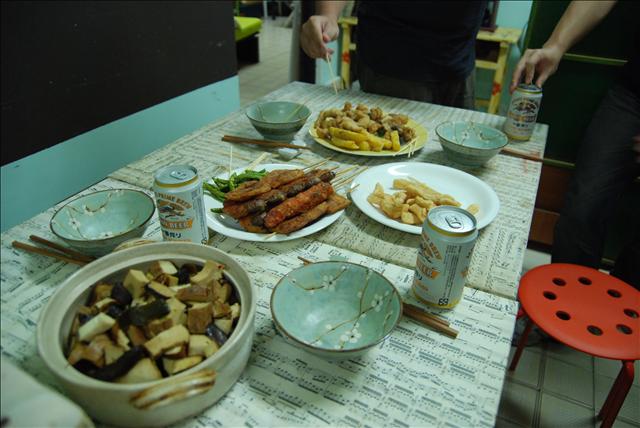 因為好朋友心情不好,所以有了這次聚會,各自帶來鹽酥雞、滷味、小菜,大伙兒陪著心情低落的朋友談天說笑。