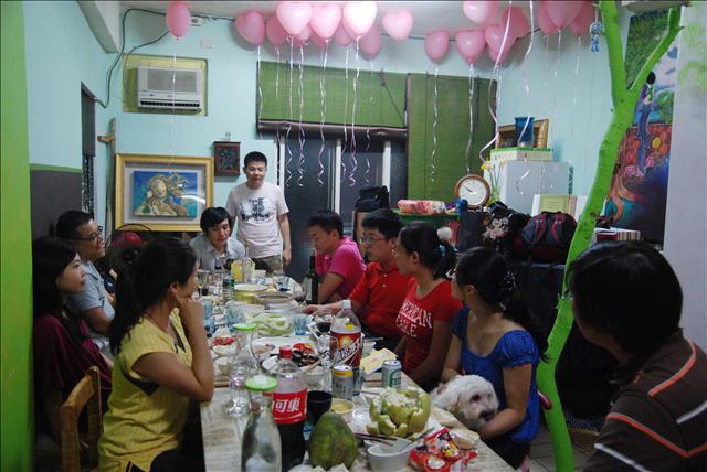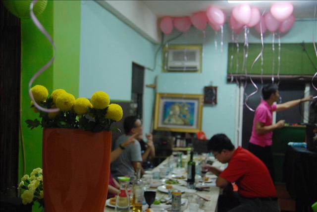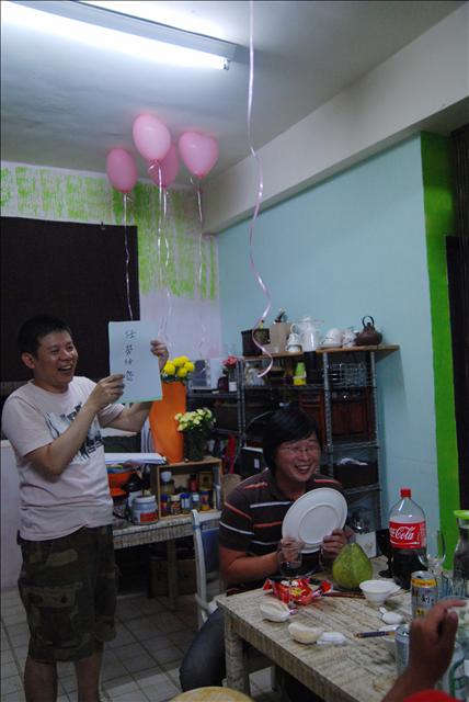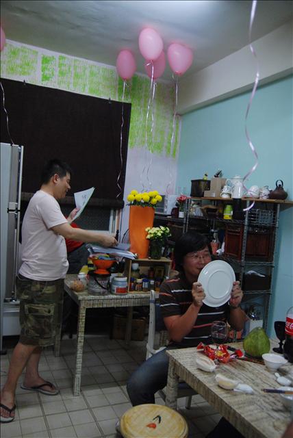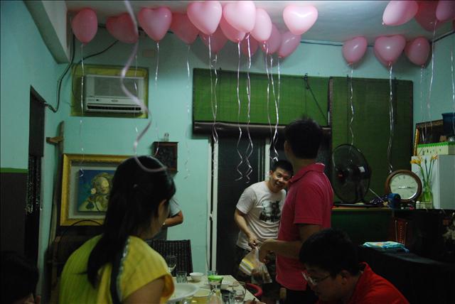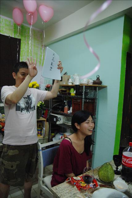 還布置了粉紅色心型氣球,是下午跟咪咪去氣球店買來的,原來氣球充氣不能超過十小時,超過十小時會自動消氣。