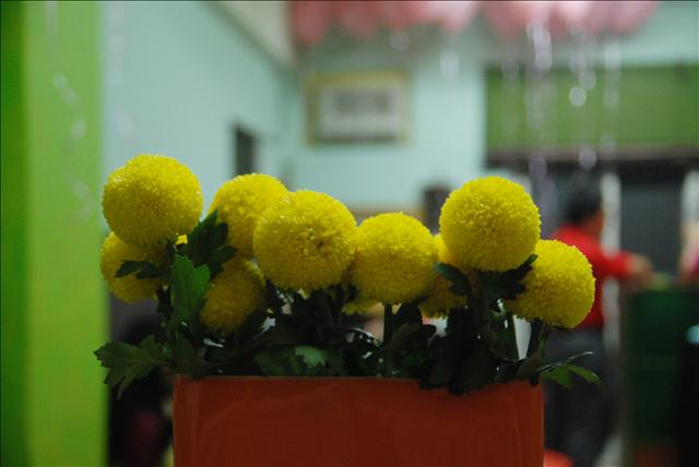 乒乓菊:外形像乒乓球的乒乓菊,因是一片片花瓣集合起來的,又稱「吉花」、「集花」,具有集合、吉祥的意思,圓形也象徵圓滿。